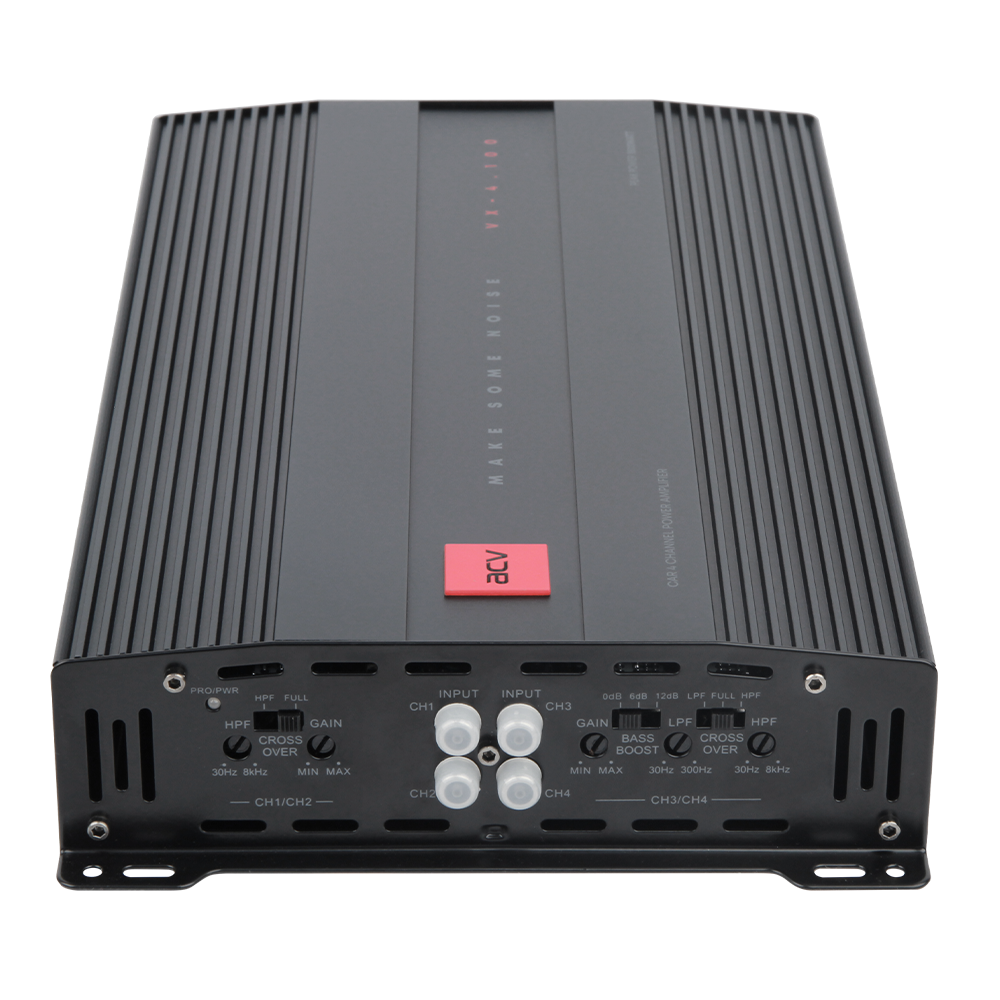 - توان خروجی مداوم در هر کانال 4 اهم : STEREO: 100W x 4